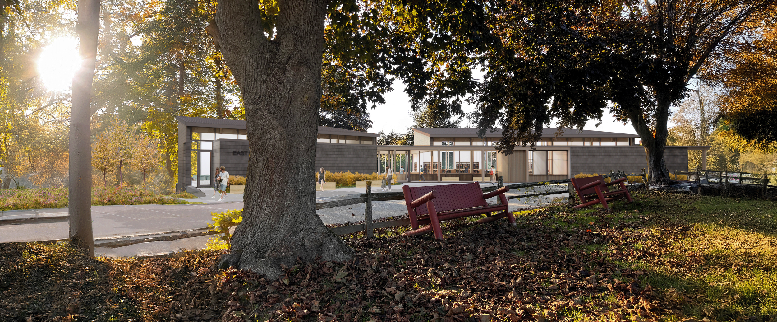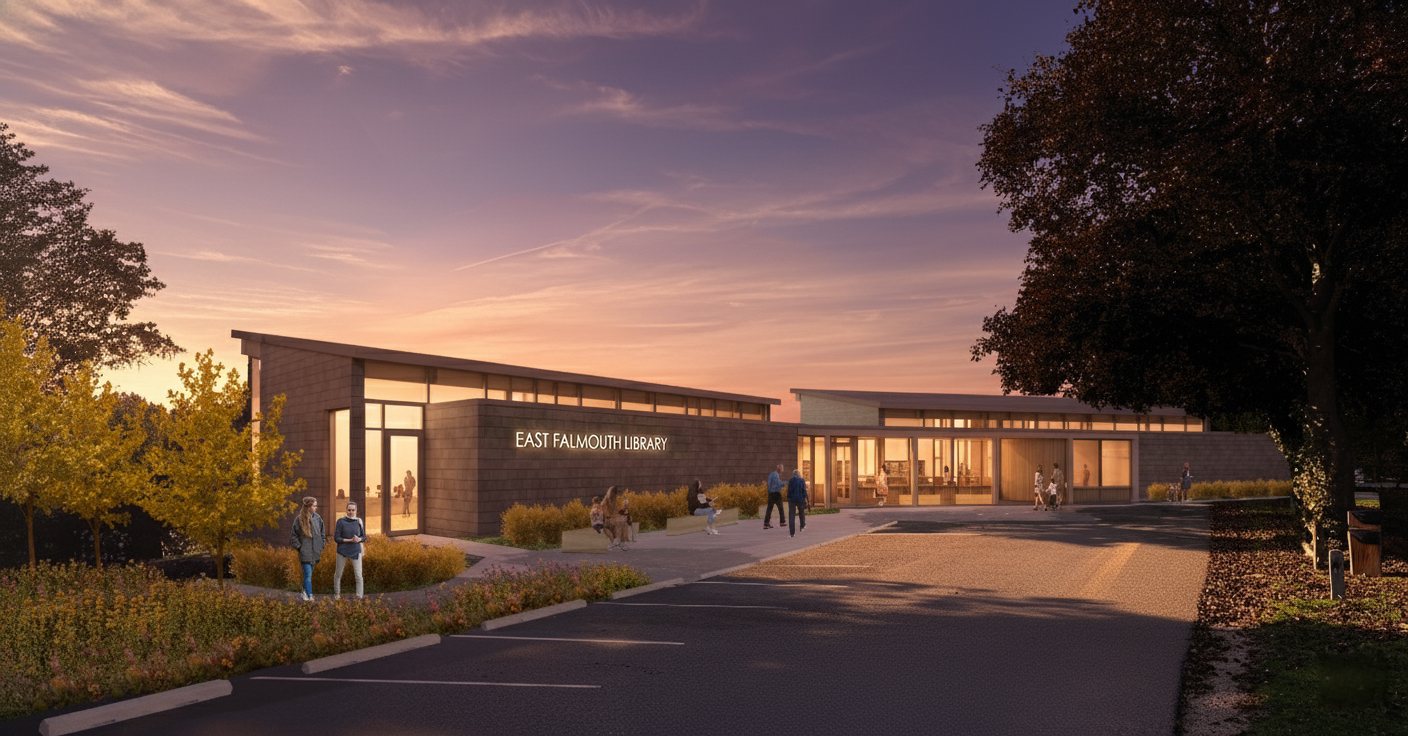 The East Falmouth Library project proposes a new, purpose-built 9,500 square foot branch library to replace the existing 5,000 square foot facility. Located on a hillside overlooking Mill Pond in East Falmouth, the current branch occupies a former single-family residence constructed in the 1950s. The non-purpose built existing building is challenged by obsolete building systems, significant life safety and accessibility deficiencies, and insufficient space to support contemporary library programs and services.