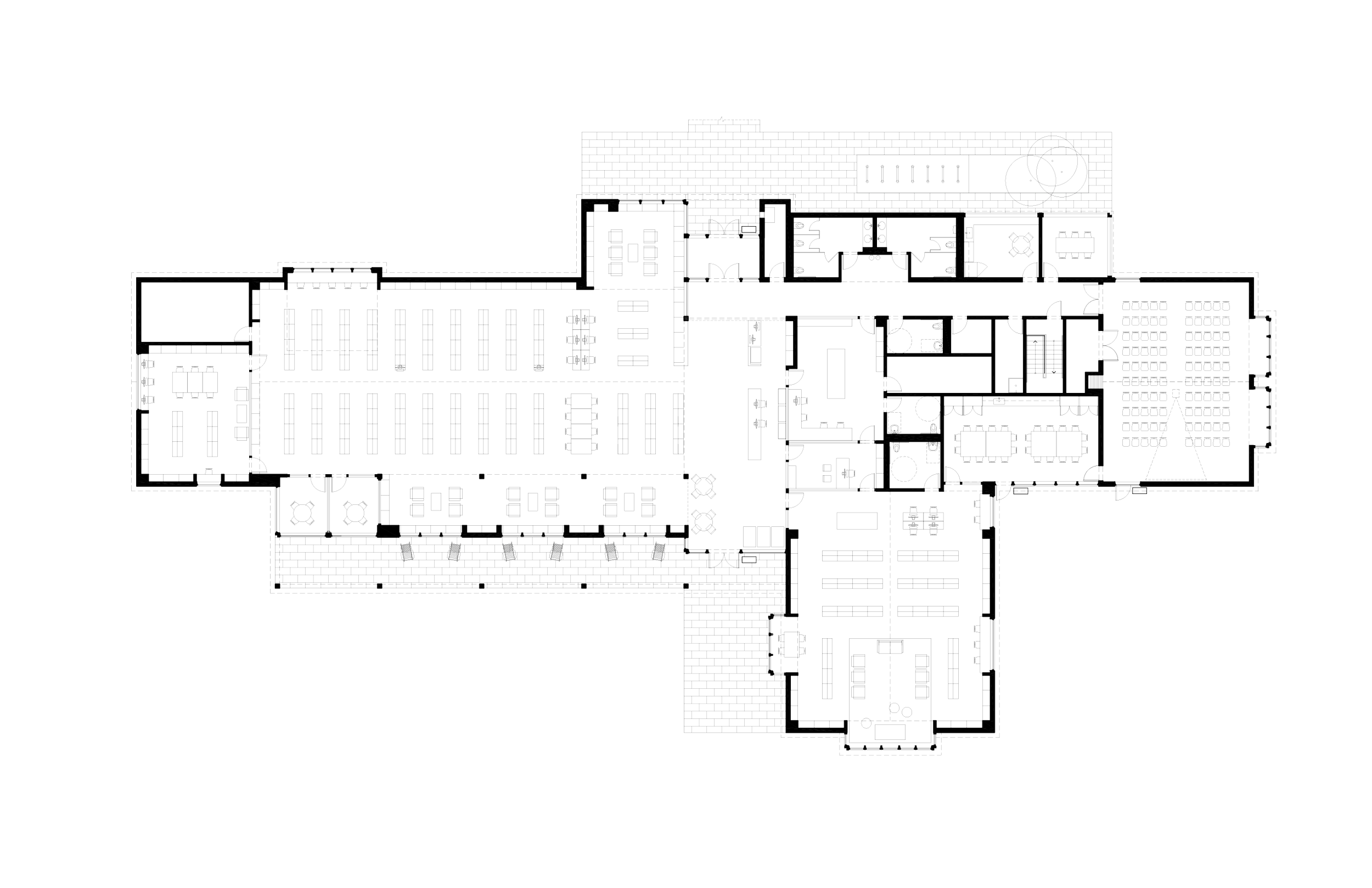 Set back from Cross Road and positioned on a slight rise in the land, the building straddles an existing open meadow landscape, facing the road, and large tract of undisturbed woodland with many old growth trees and native species. The adult, young adult and children’s wings are all oriented towards the woodland and are organized in such a way as to form a reading garden linked to both an adjacent elementary school and assisted living facility by way of new garden pathways. The site and design for the new library reflect the Dartmouth’s agrarian underpinnings, as well as its commitment to sustainability. The LEED v4 Gold project’s green features include rain gardens, permeable paving, a super insulated building envelope, variable refrigerant flow (VRF) HVAC systems and a 63,000 kWh photovoltaic array generating close to 40% of the building’s annual electrical load.