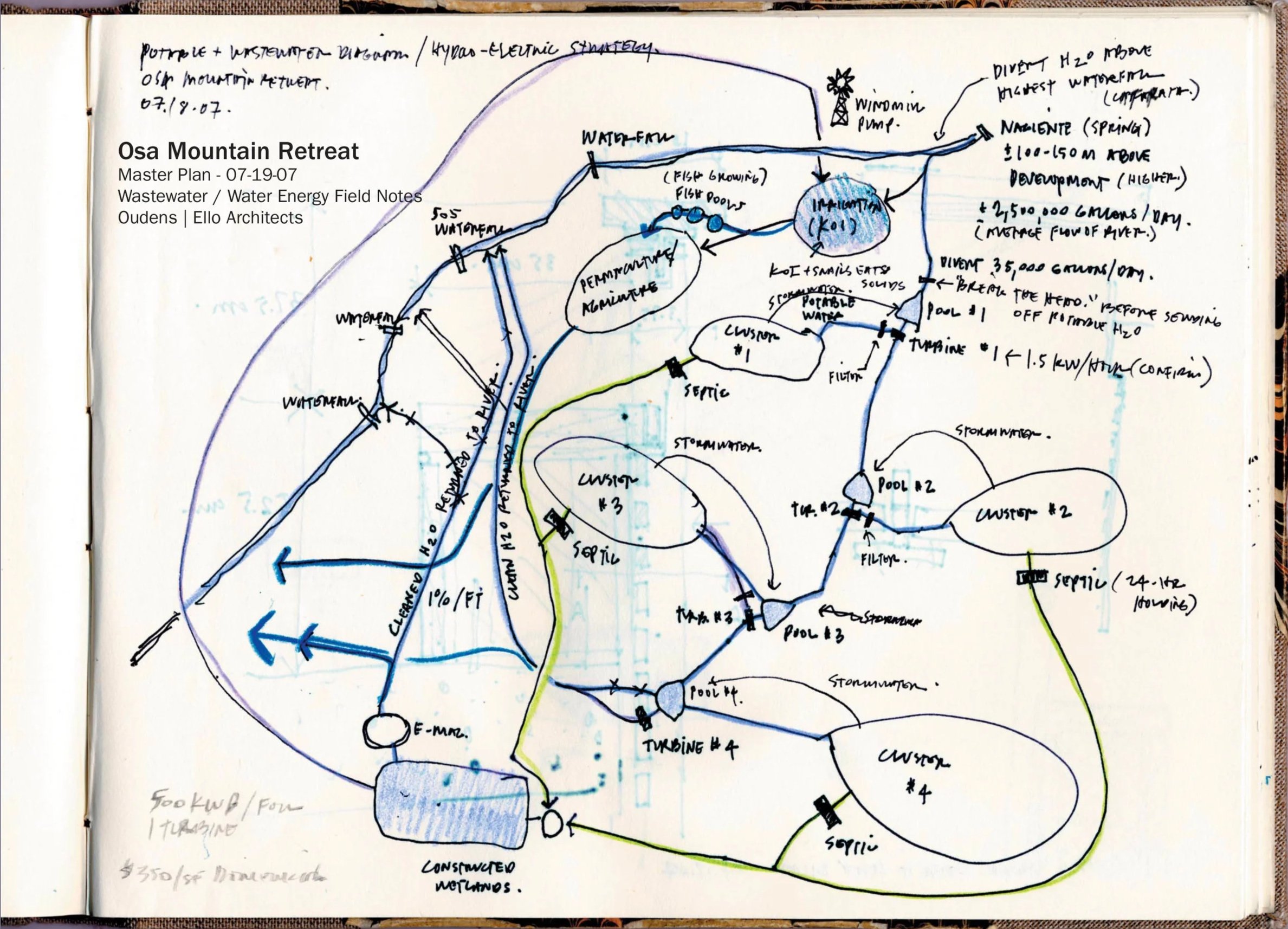 In early 2007, Oudens Ello Architecture (OEA) was selected to provide master planning and design consulting services for an 800-acre eco-tourism resort located along Costa Rica’s southwestern Pacific coast. Working in partnership with Natura 51, a green development enterprise based in New York City and Uvita, Costa Rica, OEA developed a comprehensive net-zero energy sustainability framework for the proposed 165-unit resort. The planning strategy was organized around the site’s two most significant natural assets: water and topography.