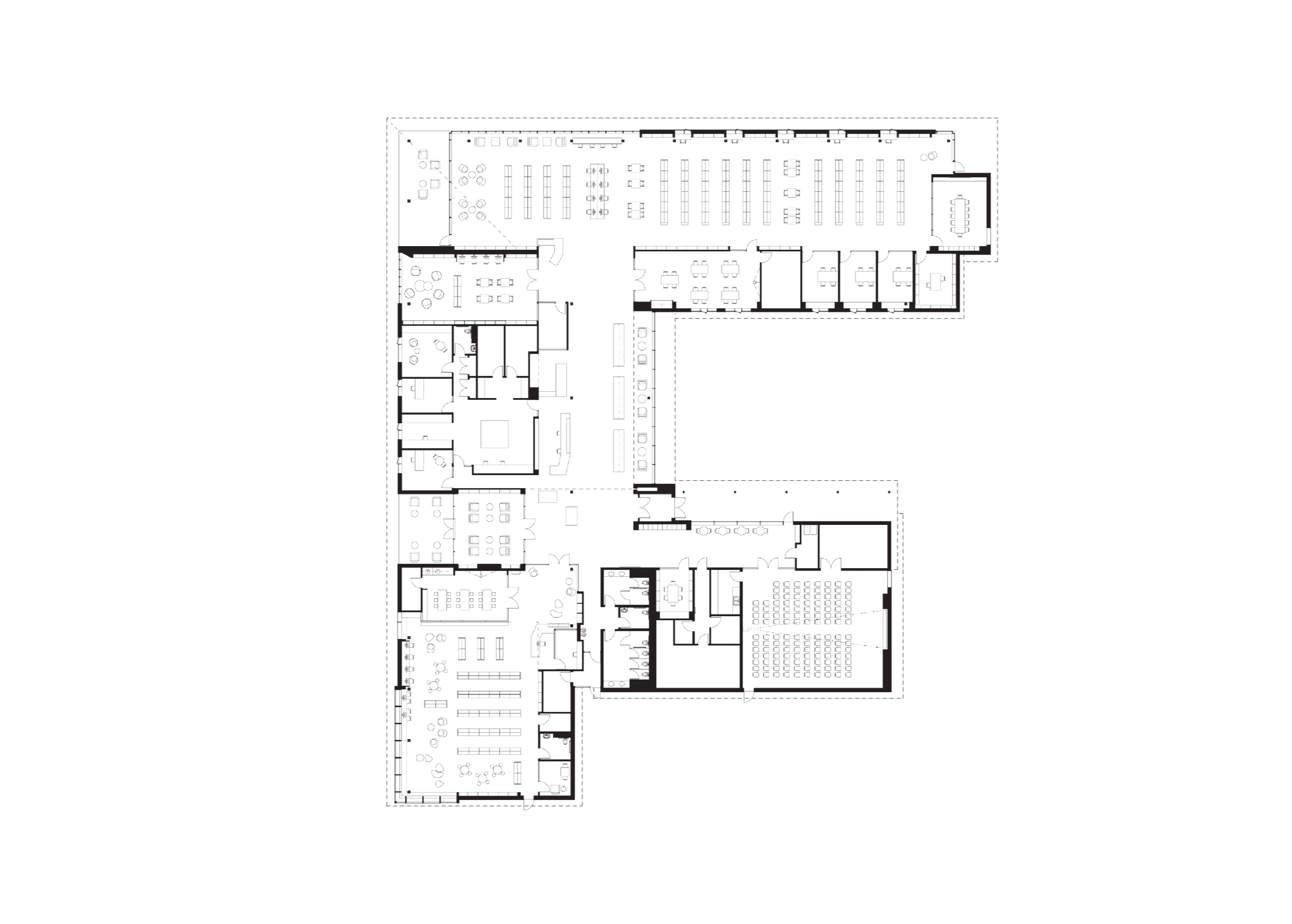 Drawing inspiration from the natural qualities of the wooded site, the 21,000 sq ft library functions as a new and vibrant community center for residents of Norwell. Opened in 2021, the single-story library is comprised of three distinct wings organized around a central rain garden. Recognizing that the library is located within a sensitive wetland ecosystem, the building is strategic in its placement and response to the site. As part of its sustainability effort, the central rain garden acts as a filtering depository for rain fall before it is redistributed back to the surrounding wetlands. More broadly speaking, the central rain garden establishes an experimental narrative for library visitors, delaying the most expansive views of the site until one progresses through the lobby into the main reading and meeting rooms. With ample light and thoughtful connections to the outdoors, the new Norwell Public Library aims to be a pleasant and productive space for visitors of all ages.