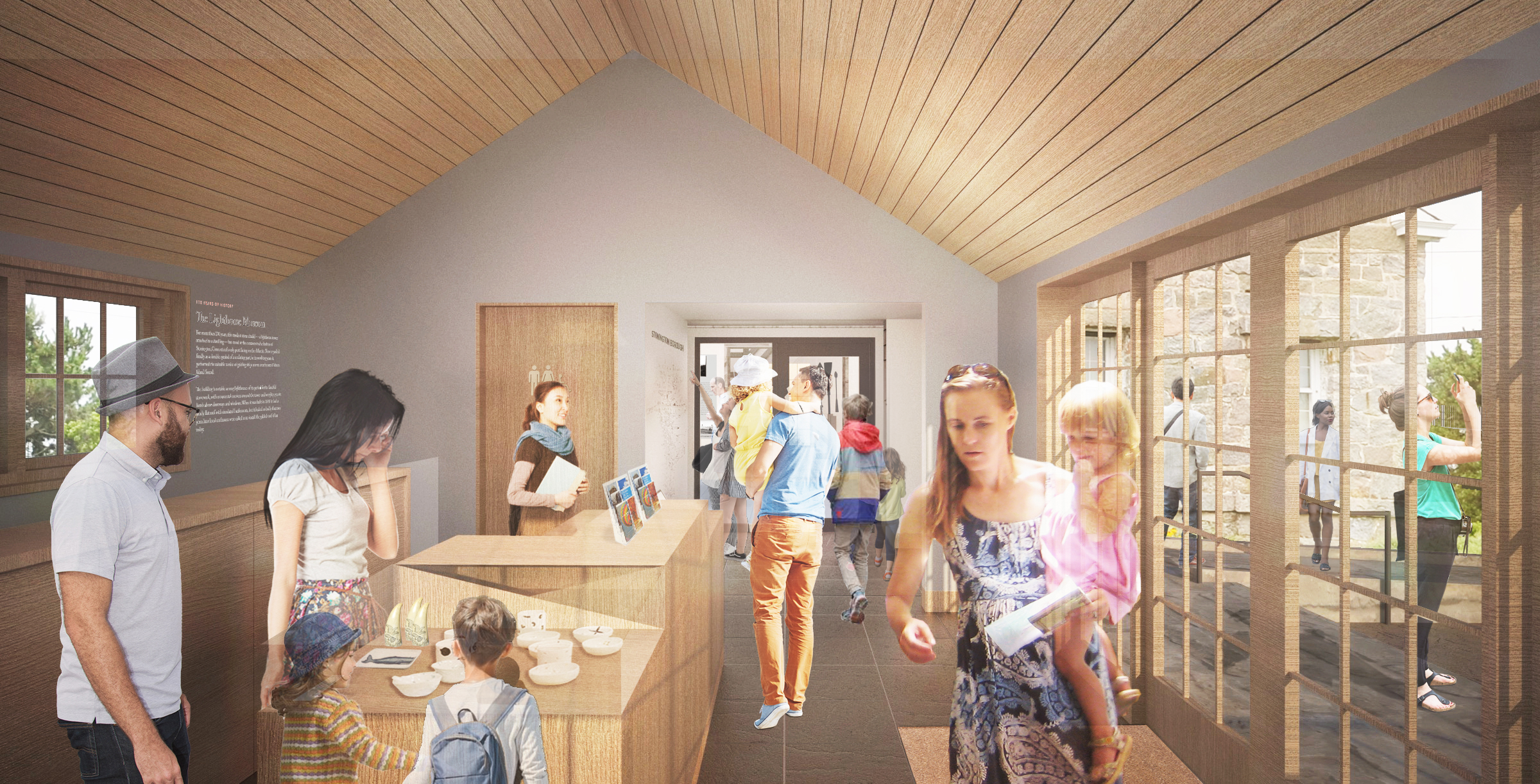 In collaboration with the Stonington Historical Society since 2012, OEA is now in the construction phase of a renovation and expansion of the Old Lighthouse Museum in Stonington, CT. Built in 1840 and on the National Register of Historic Places, the gem-like, load-bearing stone structure has operated as a local history museum for the past ninety years and had been in need of significant restoration and repair. Key institutional goals have included the long-term preservation of the lighthouse, upgraded climate control systems and a new accessible museum entry. Organized by a network of new pathways and low stone retaining walls, a reinvented public entry sequence leads visitors from the street to a new "visitor center" located on the back side of the historic structure. The new addition overlooks Fishers Island Sound and accommodates the new accessible entry to the museum, a new info/ticketing desk, a museum store, public restroom and lead-in exhibits that explain the history of the lighthouse. Inside the lighthouse proper, restoration efforts center on the preservation and rehabilitation of historical materials, as well as full replacement of damaged or diseased building elements. OEA has been collaborating with CT State Historic Preservation Office to ensure the project meets the Standards for Rehabilitation as governed by the Secretary of the Interior. OEA has also been directly involved in the historic Stonington Borough project approvals process.