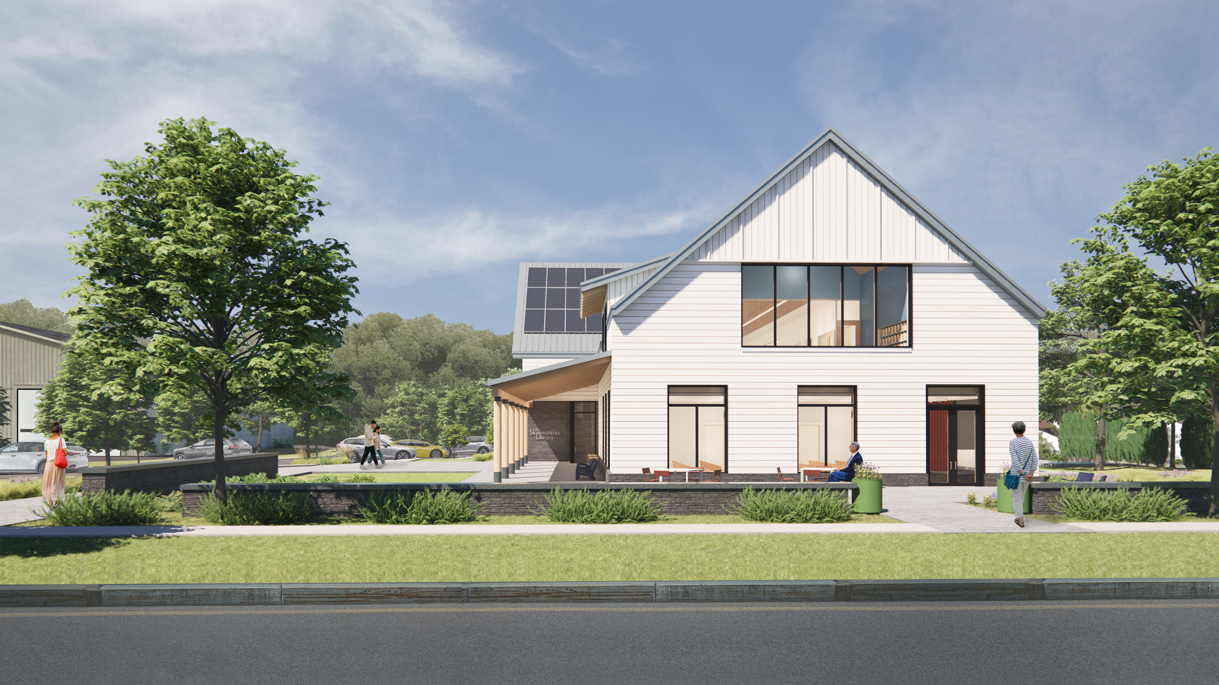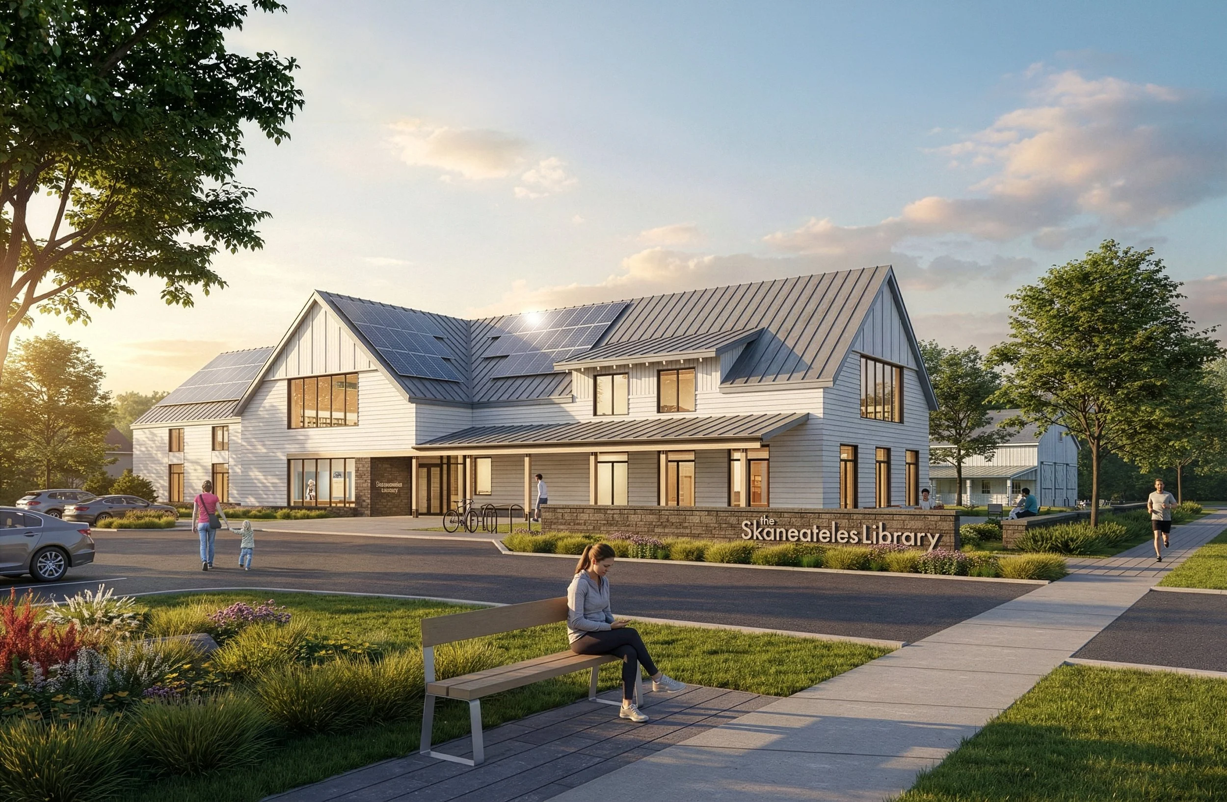 In 2023, the Skaneateles Library Association engaged Oudens Ello Architecture (OEA) to design a new 14,000-square-foot, two-story public library for the Village of Skaneateles, New York. Since 1890, the library has occupied a historic stone building on Genesee Street; while architecturally significant, the facility has long been constrained by outdated systems, limited accessibility, inadequate program space, minimal parking, and shared occupancy with a law office and the Barrow Art Gallery—conditions that precluded meaningful expansion.