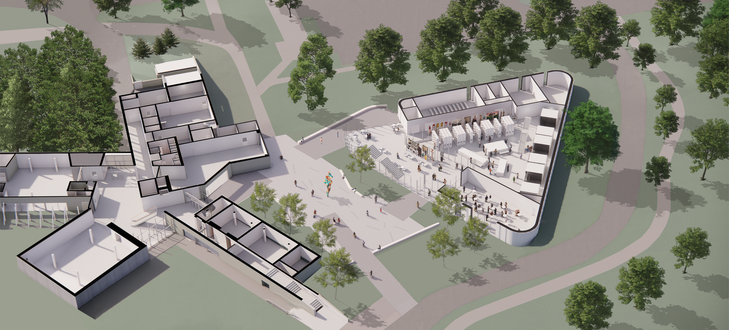 Oudens Ello Architecture (OEA) was commissioned by the Tang Teaching Museum to envision a new facility dedicated to the study, research, and long-term preservation of the museum’s collection, at the same time re-examining how collections are stored and accessed. The proposed Center for Art + Ideas places the collection at its heart, inviting visitors to experience the collections more directly. It will serve as a nexus of cultural and educational collegiate activity, situated in the park-like area between the main campus and the athletic/wellness campus. The new building is not simply an extension of the Tang Teaching Museum, but rather an independent, dynamic structure with its own identity and vitality. Designed to complement and enhance the museum’s mission, it also serves as a vital asset to the broader college community, contributing to Skidmore’s academic infrastructure with flexible environments for teaching, learning, and collaboration.